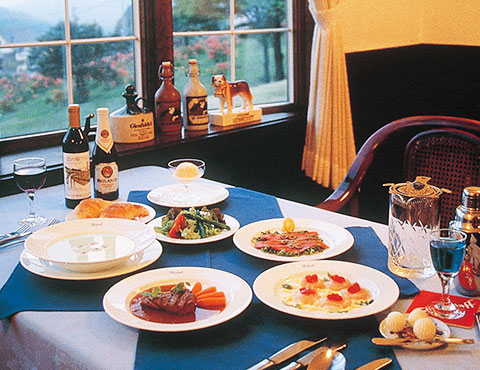 フレンチ×イタリアン×和をアレンジしたシェフオリジナルコースです。清々しい車山高原で旬の食材をご堪能ください。 お食事にあわせて各種、各国ワインのご用意もございます。信州の地酒や地ビールもぜひ味わってください。こだわりの銘酒を取り揃えたBAR「THE STARDUST CLUB」もございます。