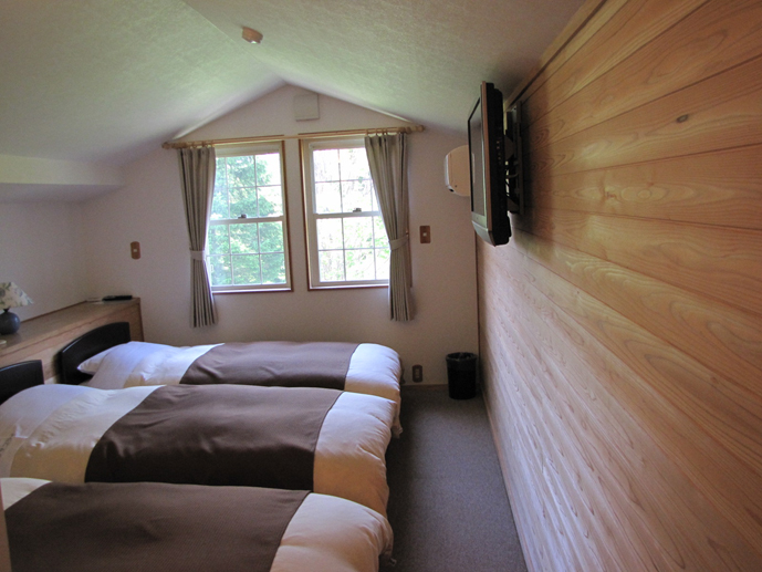 | ツイン | 八ヶ岳、南アルプスを望む南向きの明るいお部屋 シングルユースにてもご利用頂けます。 ※1名様料金 12,000円(税別)~ ※2名様料金 24,000円(税別)~ | ![]() ![]() |